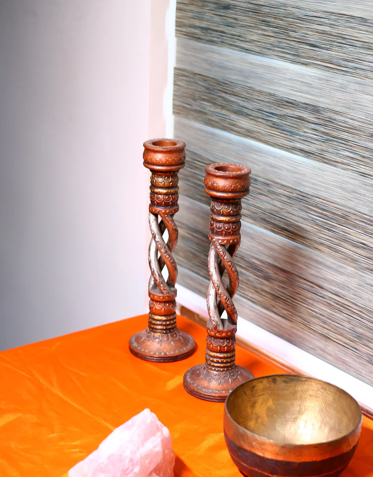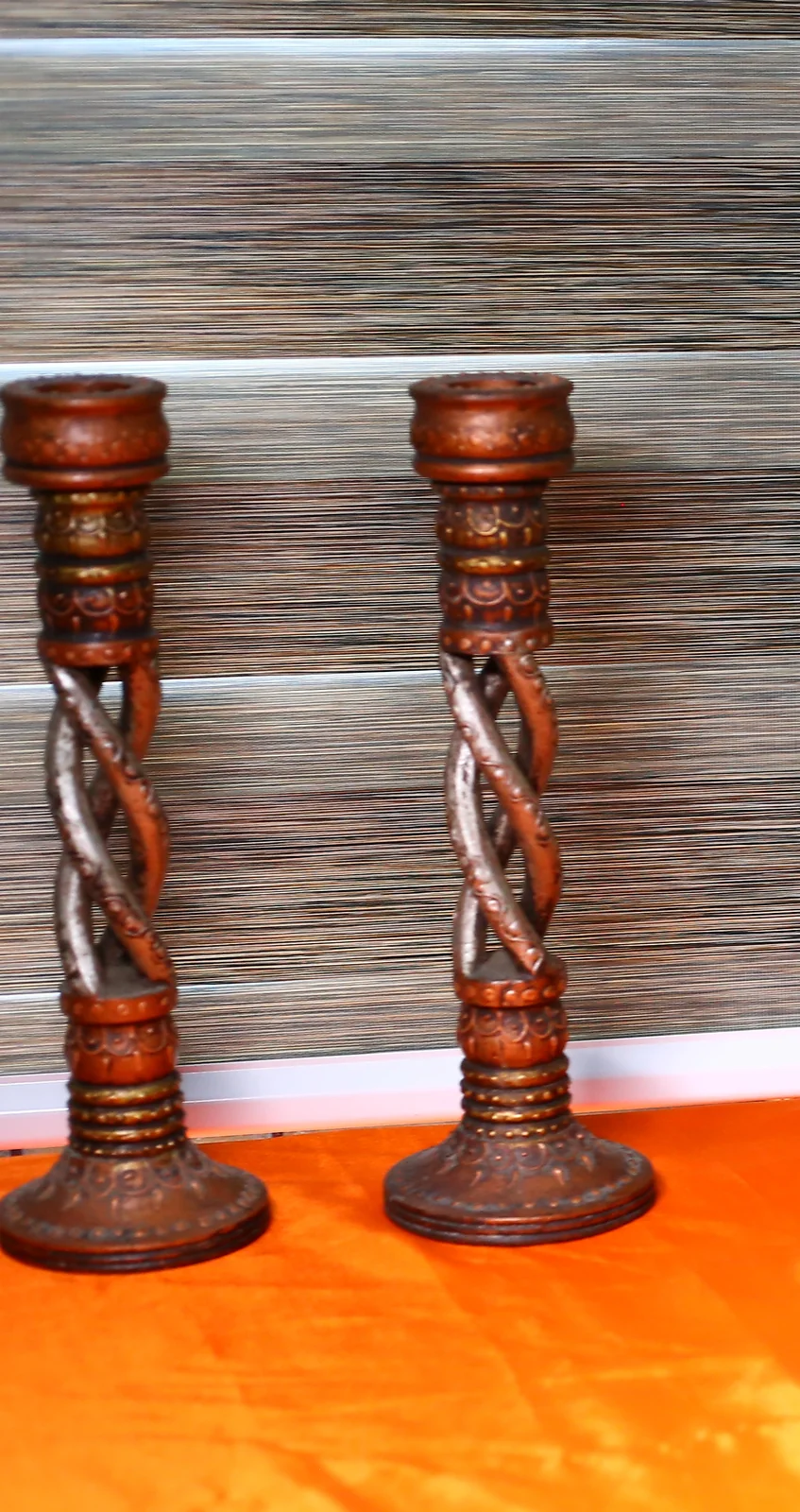12" Decorative Colorful Wood Candle Stand (Pair) Handmade Art