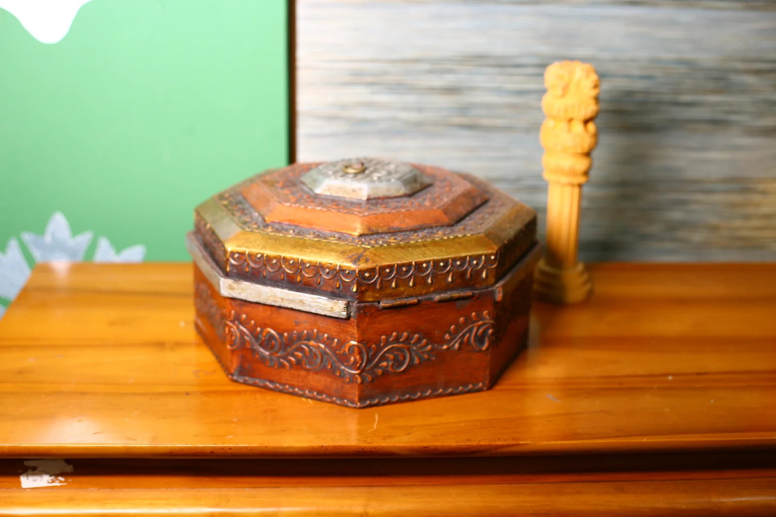 Royal Rajasthani Octagon Handcrafted Mango Wood Trinket Box